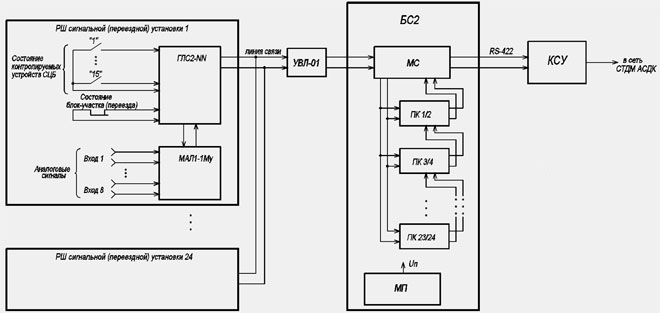 Блок станционный БС2 предназначен для размещения в нем и совместной работы одного модуля питания МП и до 12 модулей ПК. БС2 содержит также плату сопряжения и соединители для внешних подключений линии связи и интерфейса RS-232 (т.е.не требует отдельного модуля связи). При необходимости размещения в шкафах АСДК блока сопряжения, конструктивно выполненного в виде 19" блок-каркаса, может поставляться блок БС2-02.На кросс-плате блока БС2-02 установлены только соединители для подключения модулей, составляющих блок БС2-02.